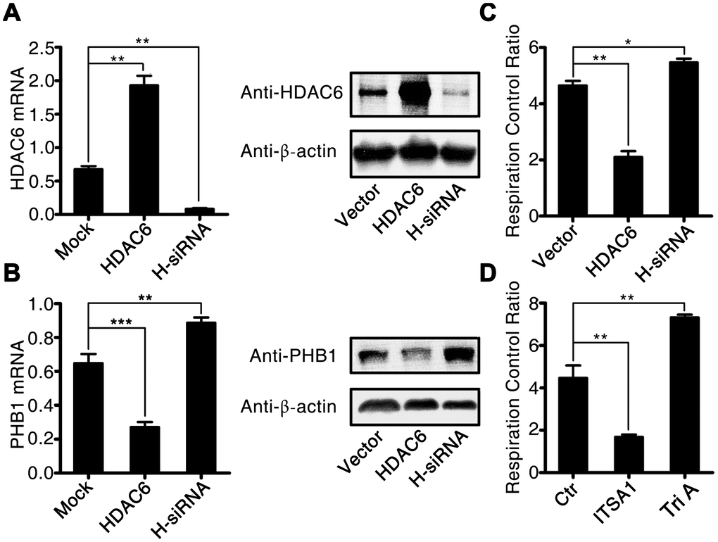 HDAC6 can regulate PHB1-mediated mitochondrial respiration