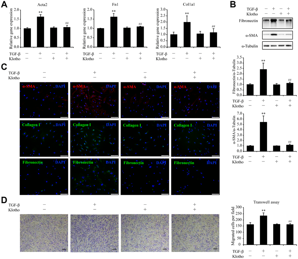 Kl alleviates TGF-β-induced pulmonary fibroblasts activation, migration, and ECM production