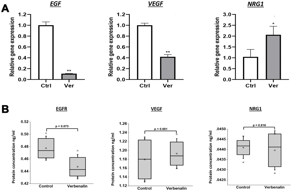 Verbenalin treatment regulated the gene expression of the receptors of the ErbB pathway