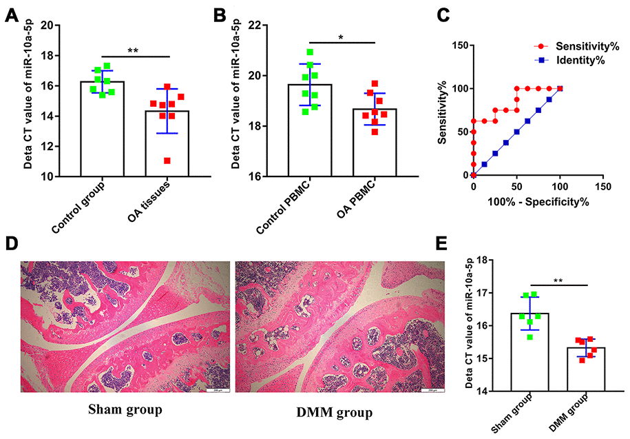 miR-10a-5p is upregulated in OA and acts as a potential promising biomarker