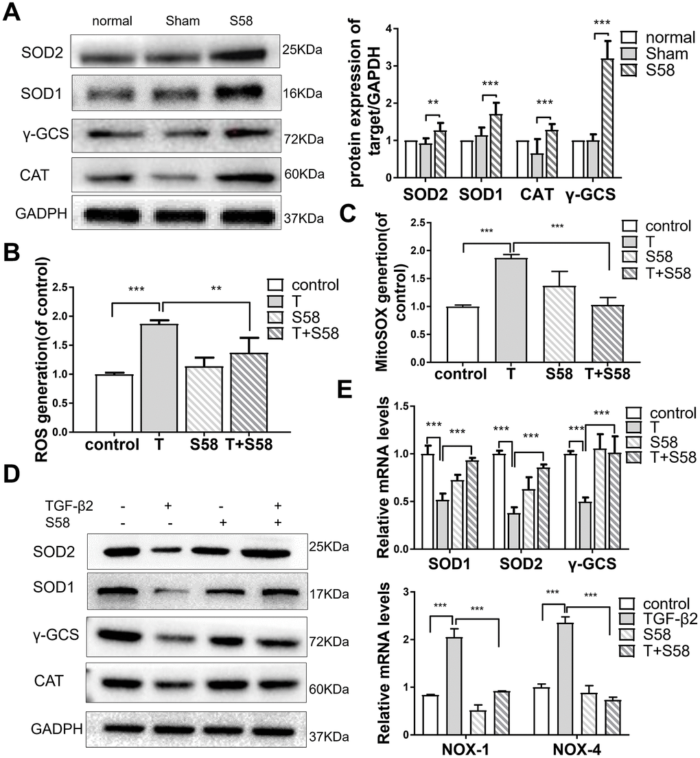 S58 promotes antioxidant defense of TGF-β2-induced HConFs