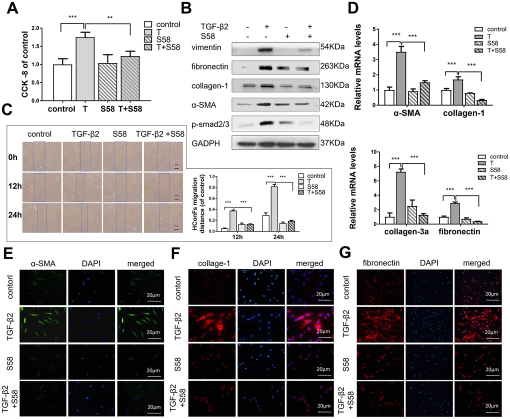 S58 reduces TGF-β2-induced HConFs fibrosis