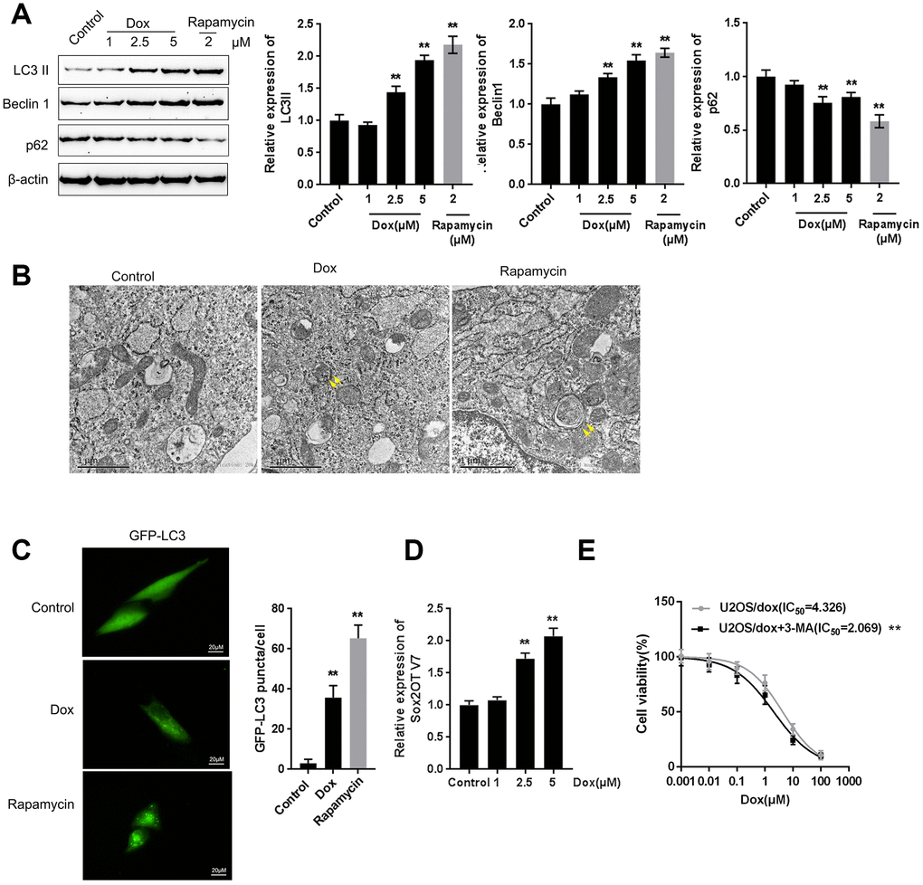 Dox treatment induces autophagy and Sox2OT-V7 expression in U2OS cells