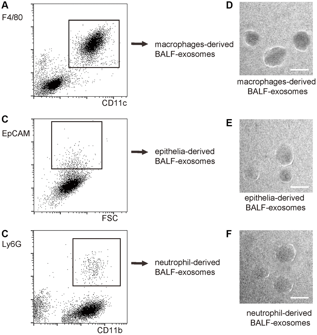 Purification of macrophage-, epithelia- and neutrophil- derived exosomes from total BALF-exosomes from ALI-mice