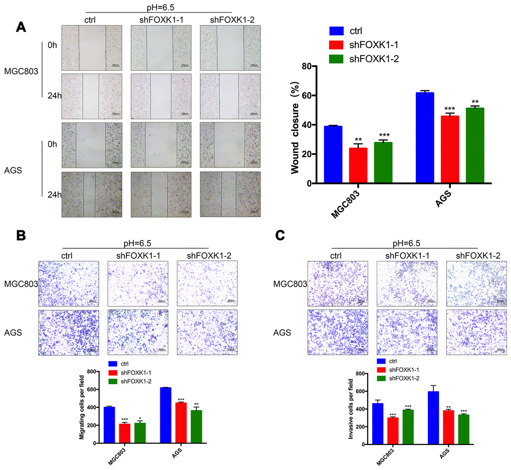 In an acidic microenvironment, FOXK1 inhibition inhibits the invasion and metastasis of GC cells in vitro