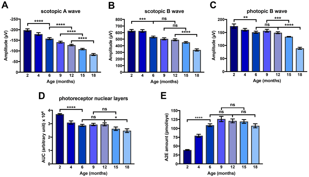 Determination of retinal degeneration, ERG amplitudes and A2E accumulation kinetics in Abca4-/- Rdh8-/- mice of different ages