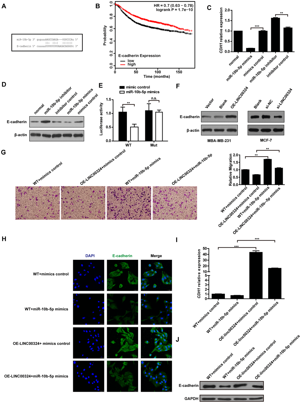 LINC00324 upregulates the expression of E-cadherin by sponging miR-10b-5p
