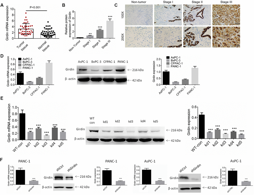 Girdin was over-expressed in pancreatic cancer tissues and cells