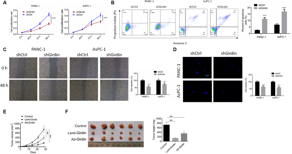 Girdin down-regulation regulated cell proliferation, apoptosis, migration and invasion of pancreatic cancer cells