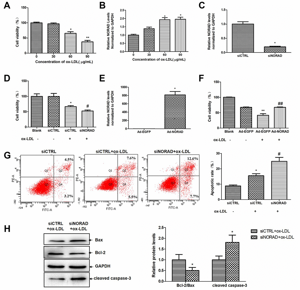 NORAD-knockdown aggravates ox-LDL-induced reduction of cell viability and cell apoptosis in HUVECs
