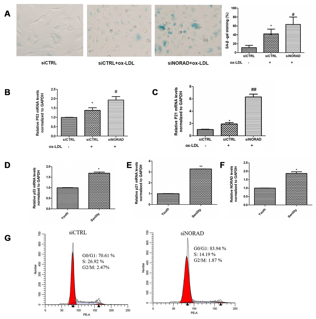 NORAD-knockdown induces cell cycle arrest in G0/G1 and aggravates ox-LDL-induced cell senescence of HUVECs