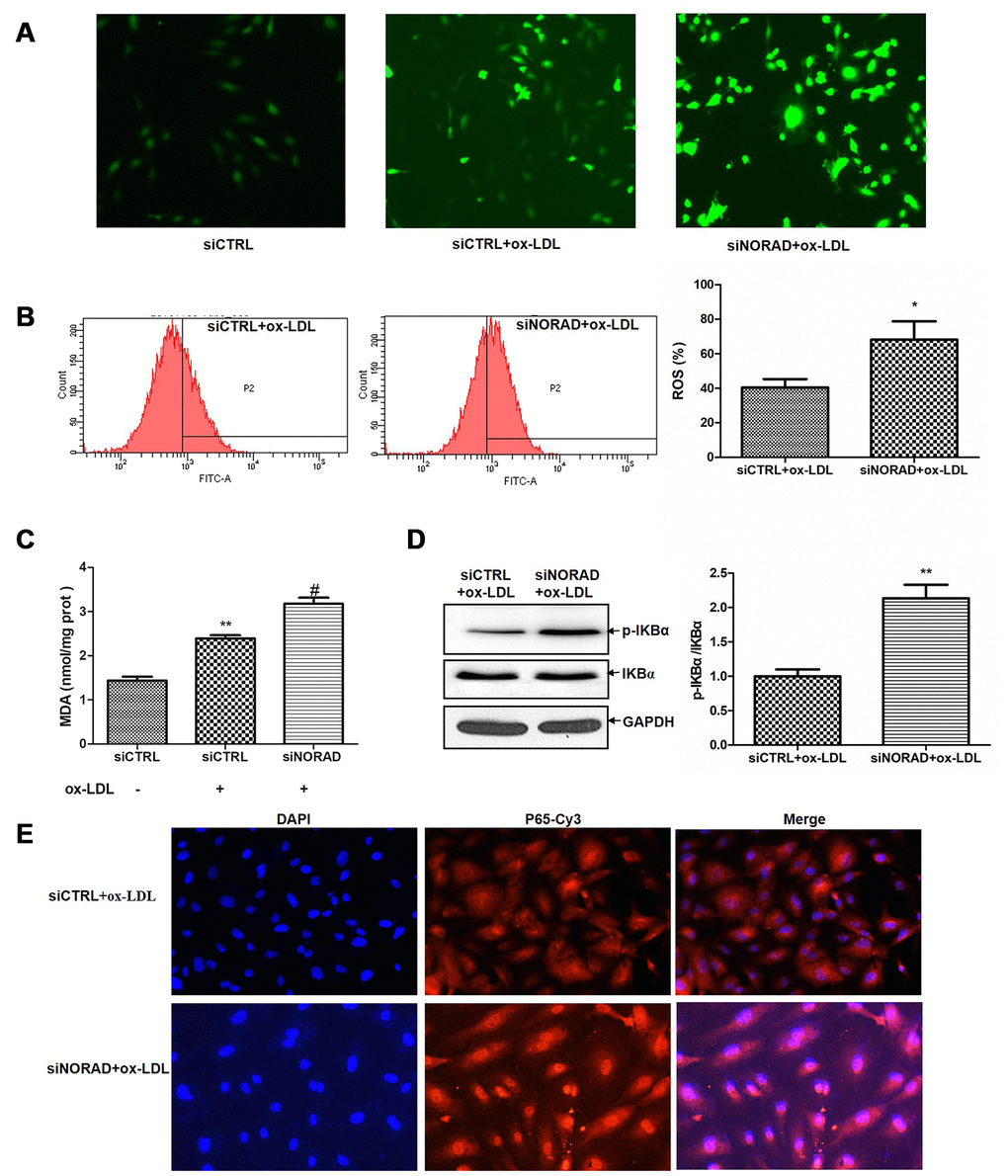 NORAD-knockdown aggravates ox-LDL-induced oxidative stress and p-IKBα expression level in HUVECs