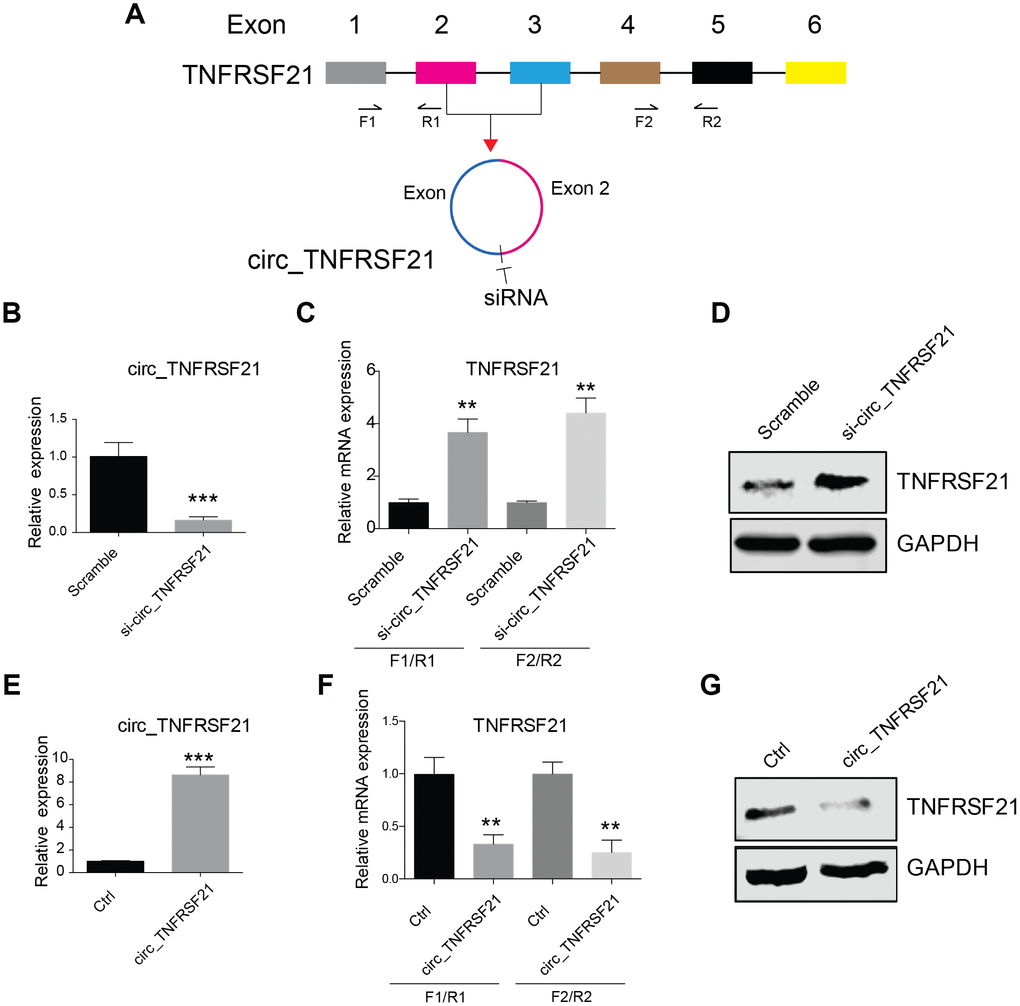 circTNFRSF21 inhibits TNFRSF21 mRNA and protein expression