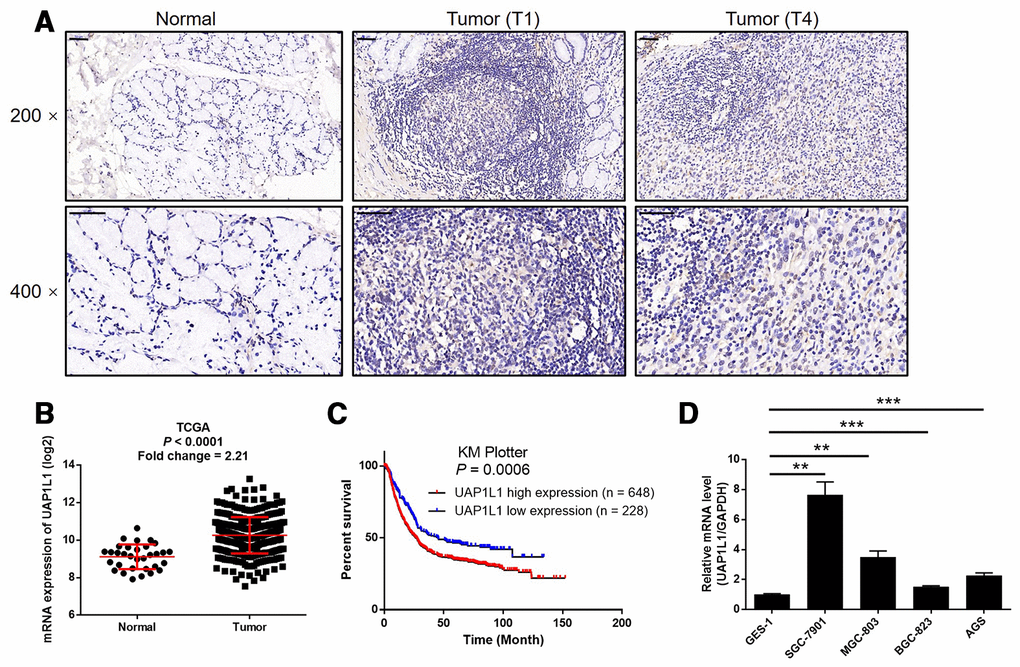 UAP1L1 is upregulated in gastric cancer tissues and expressed in gastric cancer cells
