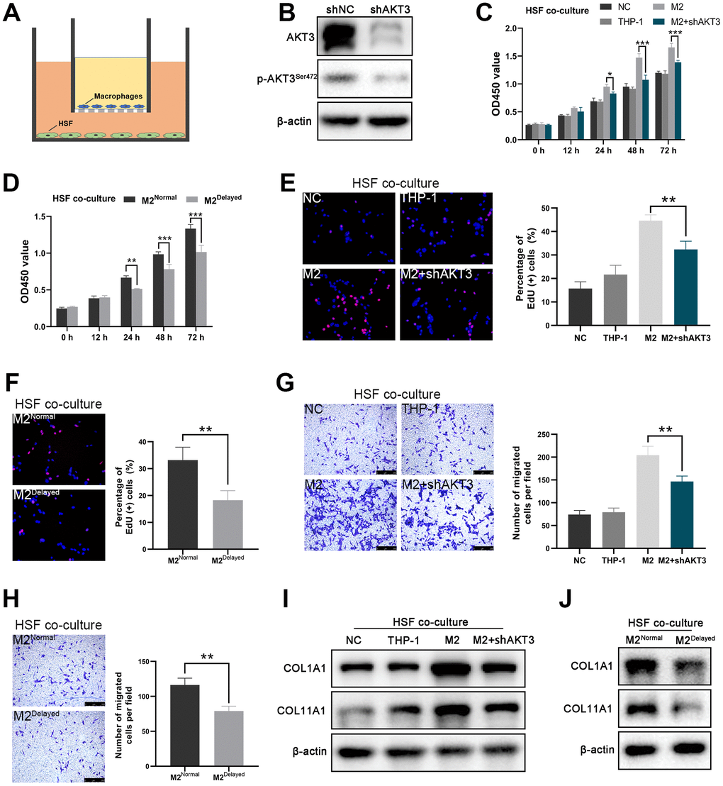 AKT3 knockdown in M2 macrophages impaired HSF proliferation and migration in ex vivo co-culture model