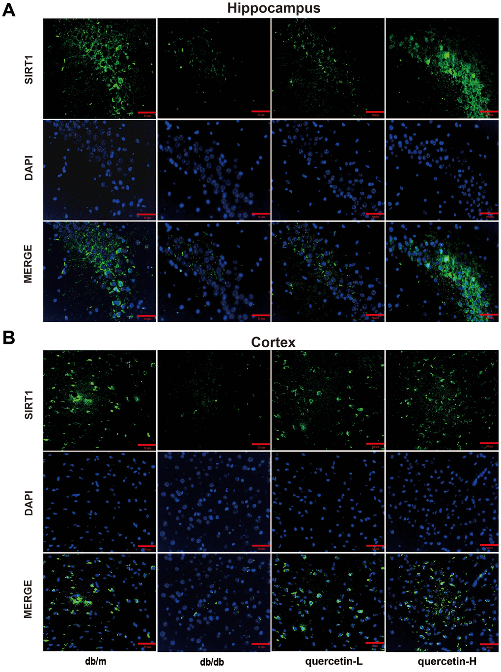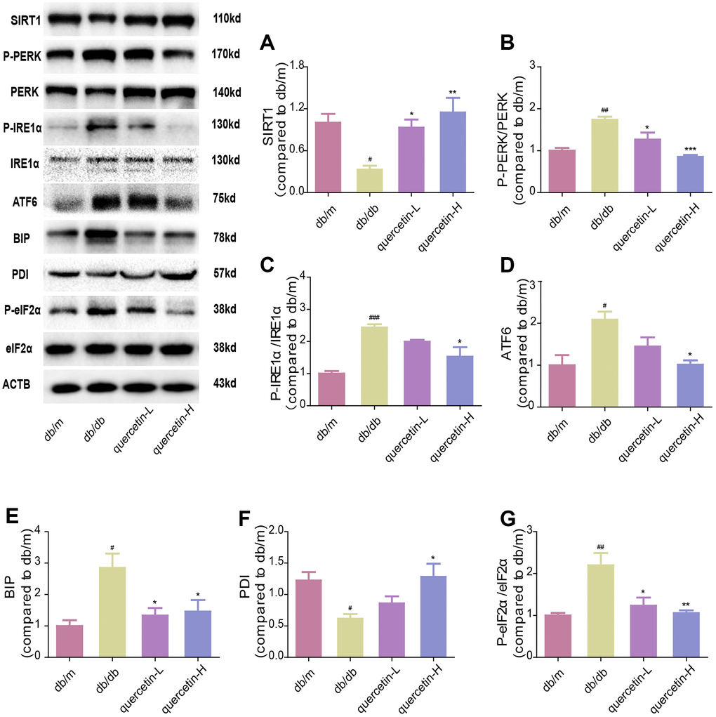 In this study, we focused on the mechanism of action of quercetin in improve DE. We used an animal model of type 2 diabetes (db/db mice) [10] to investigate whether quercetin improves cognitive dysfunction through the SIRT1/ER stress pathway. We found that quercetin activated SIRT1 and regulated the ER stress pathway might be an effective mechanism in db/db mice.