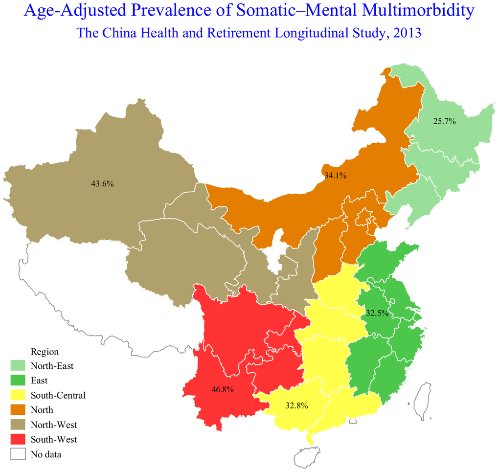 The aim of this study is to (1) estimate the prevalence and patterns of SMM by age, sex, residence, and geographical region in a nationally representative Chinese population and (2) explore the association of different combinations of somatic and mental conditions on prospective disability in older adults.