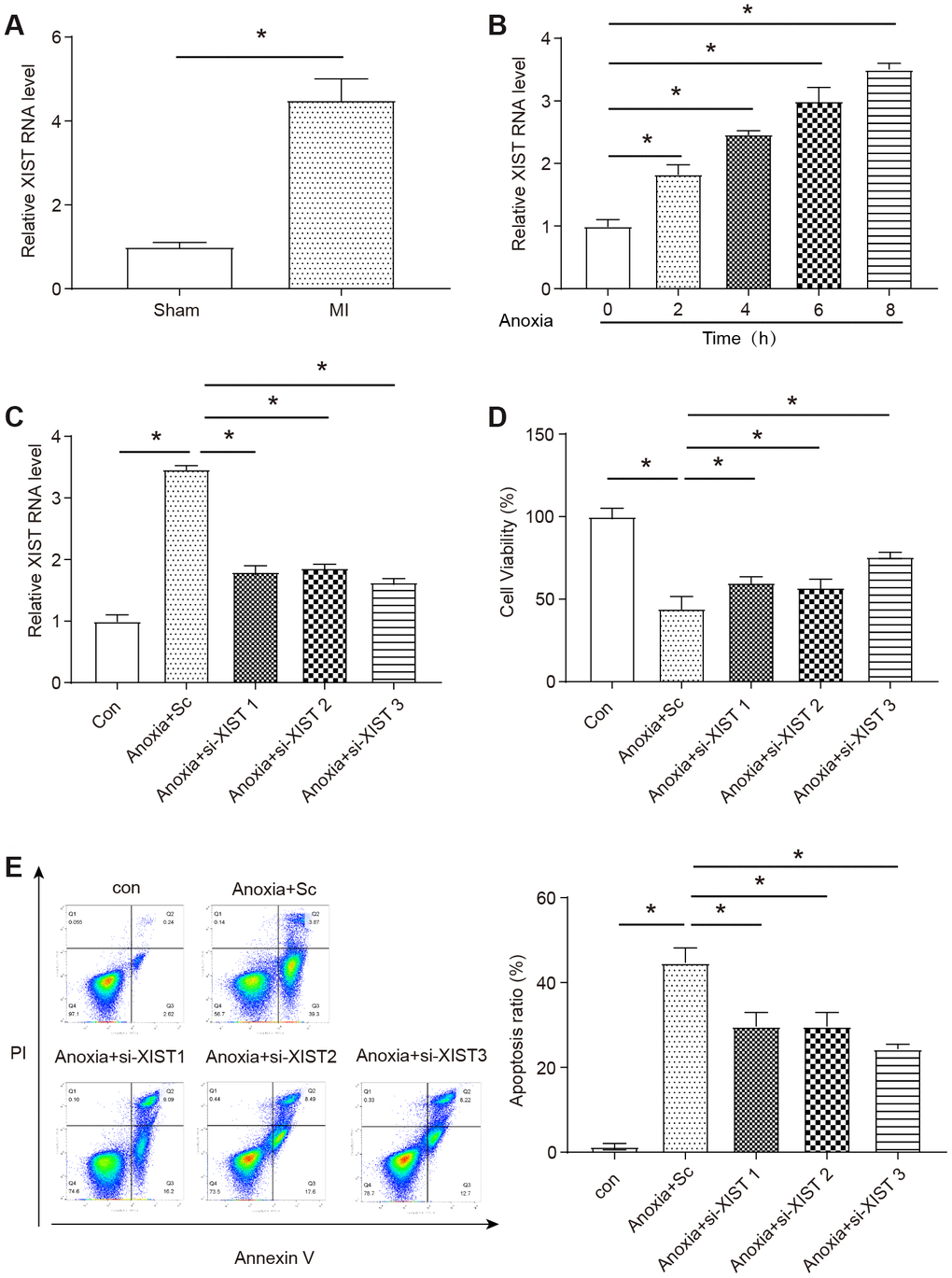 Knocking down XIST protects cardiomyocyte viability and prevents apoptosis