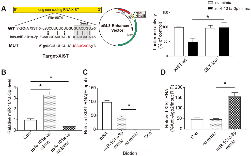 XIST is able to directly bind to miR-101a-3p