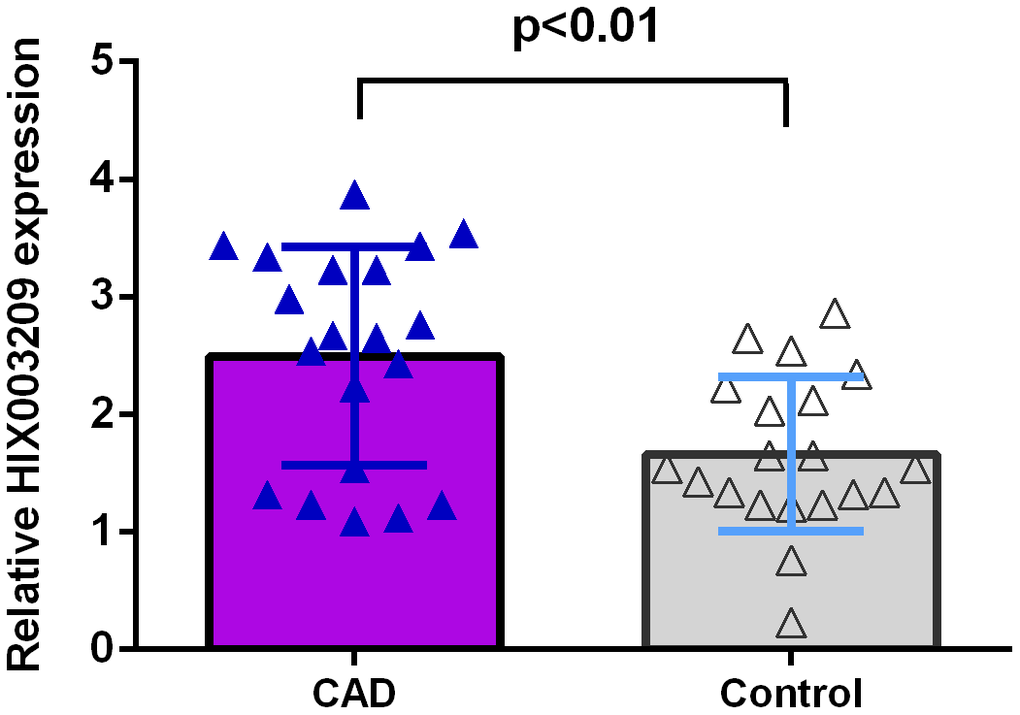 HIX003209 expression was overexpressed in coronary artery disease