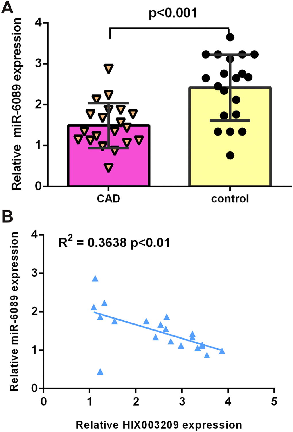 miR-6089 expression was downregulated in CAD