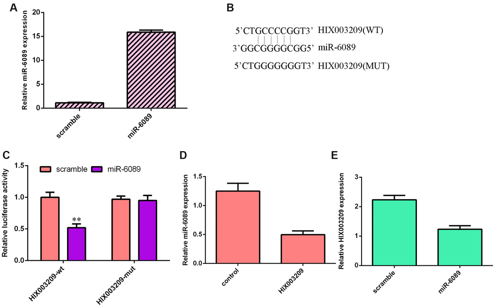 miR-6089 targeted the 3’-UTR of HIX003209