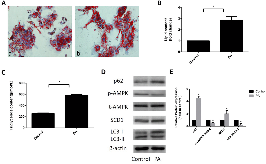 Expression of SCD1 and activation of AMPK and lipophagy in sodium palmitate-induced primary hepatocytes