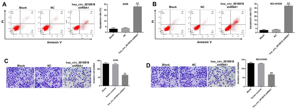 Hsa_circ_0018818 shRNA1 induces apoptosis and reduces the invasiveness of NSCLC cells