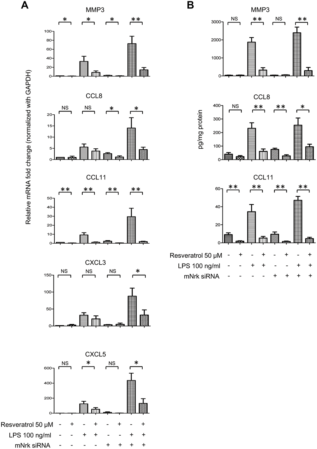 Effect of resveratrol on LPS- and Nrk siRNA-induced MMPs and chemokines in VSMCs