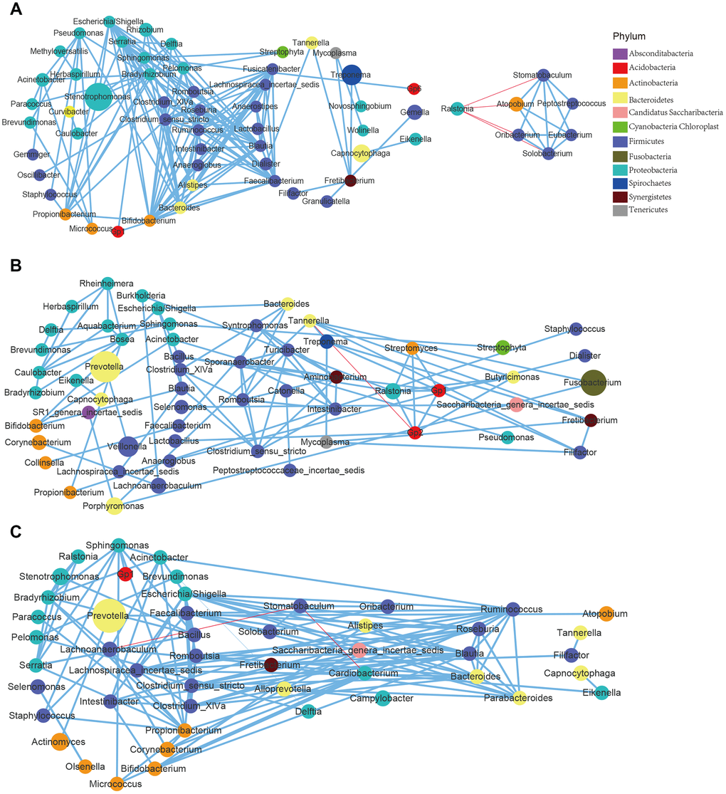 There are a variety of unique microenvironments in the mouth, such as hard teeth, non-shedding surfaces and mucosal epithelial surfaces. These surfaces are exposed to the fluid phase of the saliva or to the gingival crevicular fluid (GCF). The microbial communities that inhabit on these surfaces are also different [22, 23]. Saliva forms a film approximately 0.1 mm deep across the inner surface of the mouth and plays an important role in maintaining dental health by washing away microorganisms and neutralizing the acid produced by bacteria. In this study, the intersite comparison of bacterial diversities, microbial composition, and bacterial correlation indicated the distinction between sites in response to aging. The reason for the differentiation can be attributed to the environmental factors such as epithelial cells exposed to the flora, AMPs, mucus barriers, SIgAs, epithelial microvilli, epithelial tight junctions, epithelial metabolism, oxygen barriers, and miRNA, etc. However, other factors also cannot be ignored: changes in metabolism and daily activities. For example, each age group has its own metabolic characteristics: young people have a high level of metabolism while the metabolism of the elderly is slower. Young and middle-aged people have a high frequency of social activities, i.e., they will travel to a variety of different places, and this is relatively less likely to occur for teenagers and the elderly. All of these factors have shaping effects on microbiota and trigger a change in the microbial composition over time. Our research confirmed this hypothesis; the number of intersite differential bacteria showed a trend of increasing at first and then decreasing (bell-shaped) with age, and the bacterial correlation was relatively higher among the younger groups.