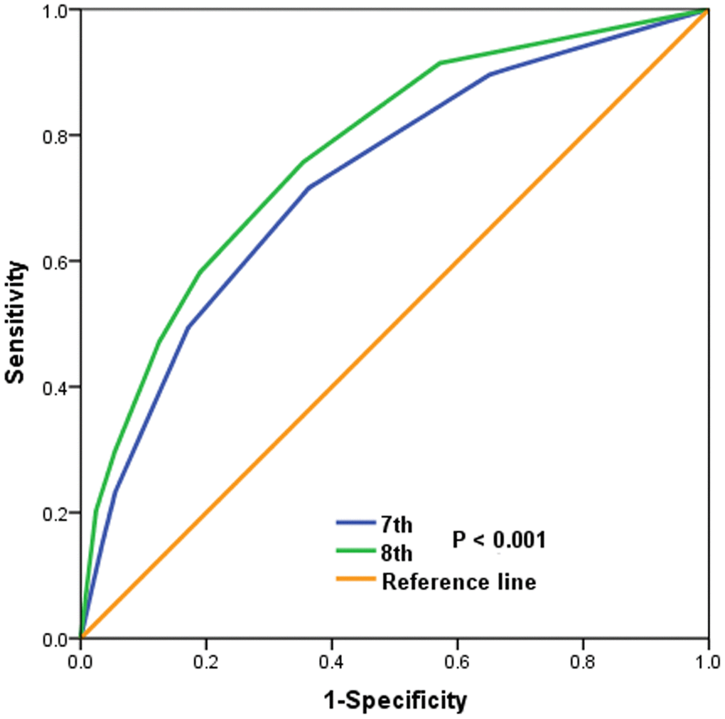 Table 5. Multivariate prognostic analysis including the 7th and 8th edition staging systems.