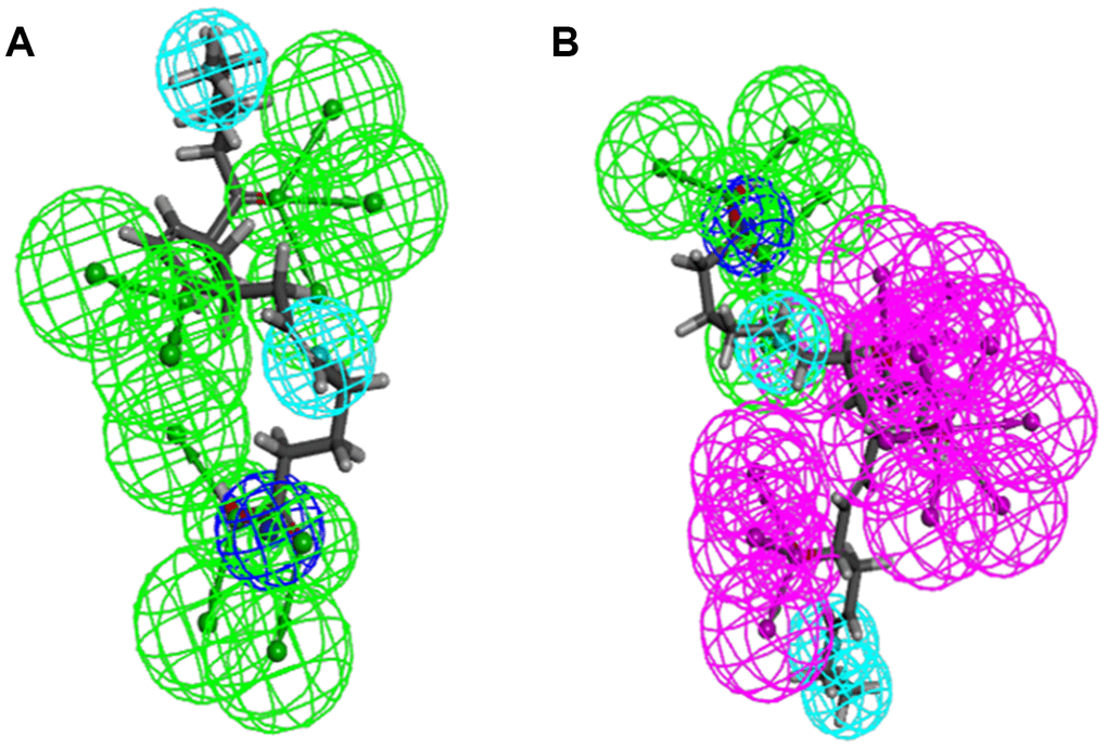 Regarding compound designation, computation results showed 11 feature pharmacophores in ZINC000012495022, with hydrogen bond acceptor, hydrophobic center and Ionizable negative, and 38 feature pharmacophores in ZINC000003791817, with hydrogen bond acceptor, hydrogen bond donor, hydrophobic center, and Ionizable negative in computational prediction of pharmacophore, which means these 2 compounds may have a more appropriate effective pharmacophore. Different functional groups could be added into these 2 lead compounds to increase their significance in cancer-therapy drug therapy and drug improvement in future research.