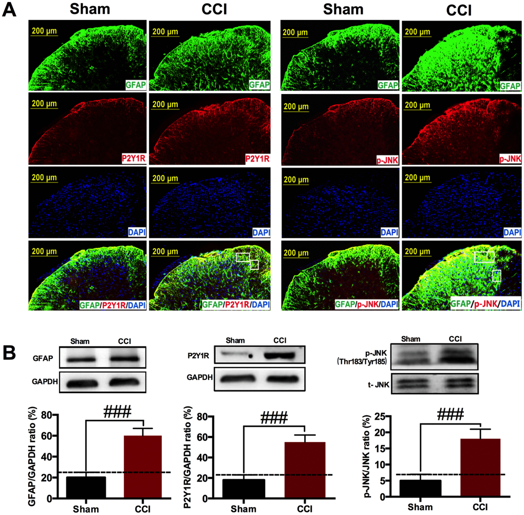 CCI induced astrocytic P2Y1R up-regulation and JNK activation in the spinal cord