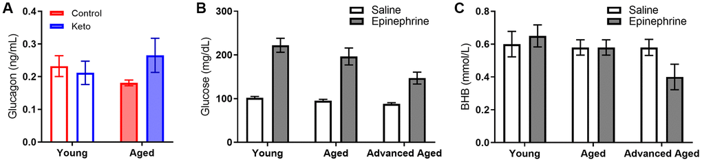 | Figure 10B, 10C: Epinephrine-induced stress response in advanced age | Young n = 6 Aged n = 10 Advanced Age n = 5 | ||