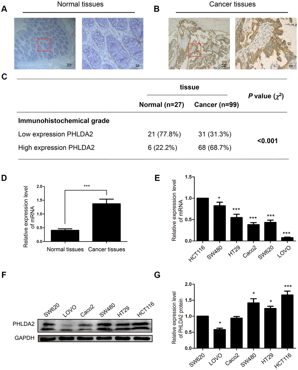 Levels of PHLDA2 in CRC tissue, HCT116 cells, and SW480 cells