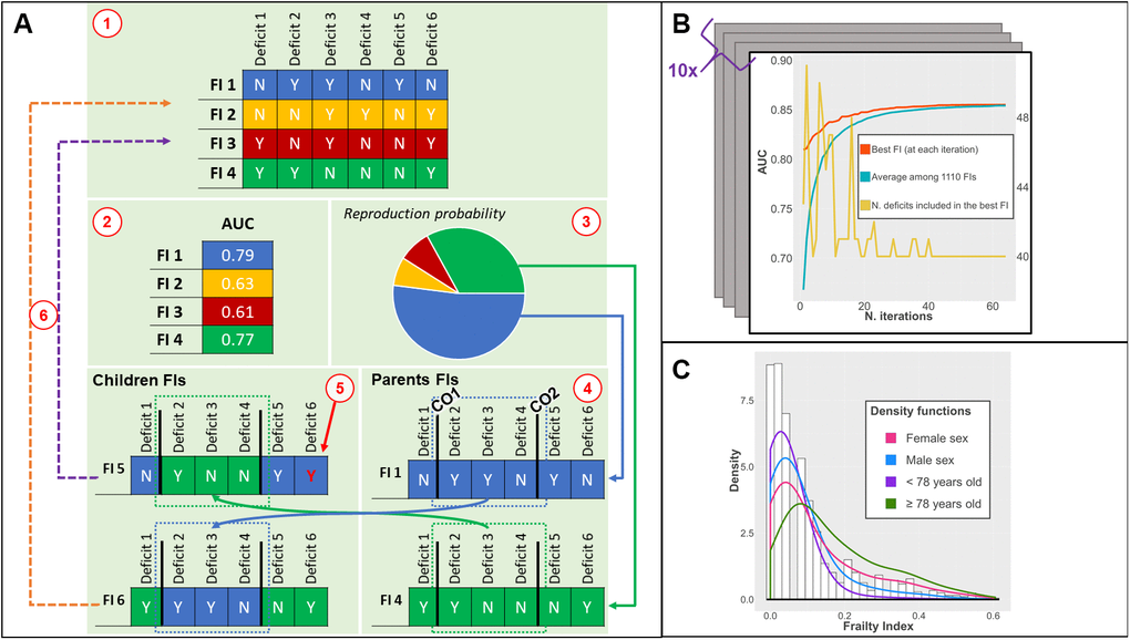 In the present study, we showed that an optimization algorithm can be used to guide the selection into which and how many deficits are to be included in a highly performant FI. To the best of our knowledge, this is the first time robust and standardized optimization methodology has been employed for this purpose. The adoption of the genetic algorithm led to a FI exhibiting AUCs higher than most of those reported in previous literature for the prediction of mortality, stable across different age and sex subgroups, and both in the short and long term [25, 32–34].