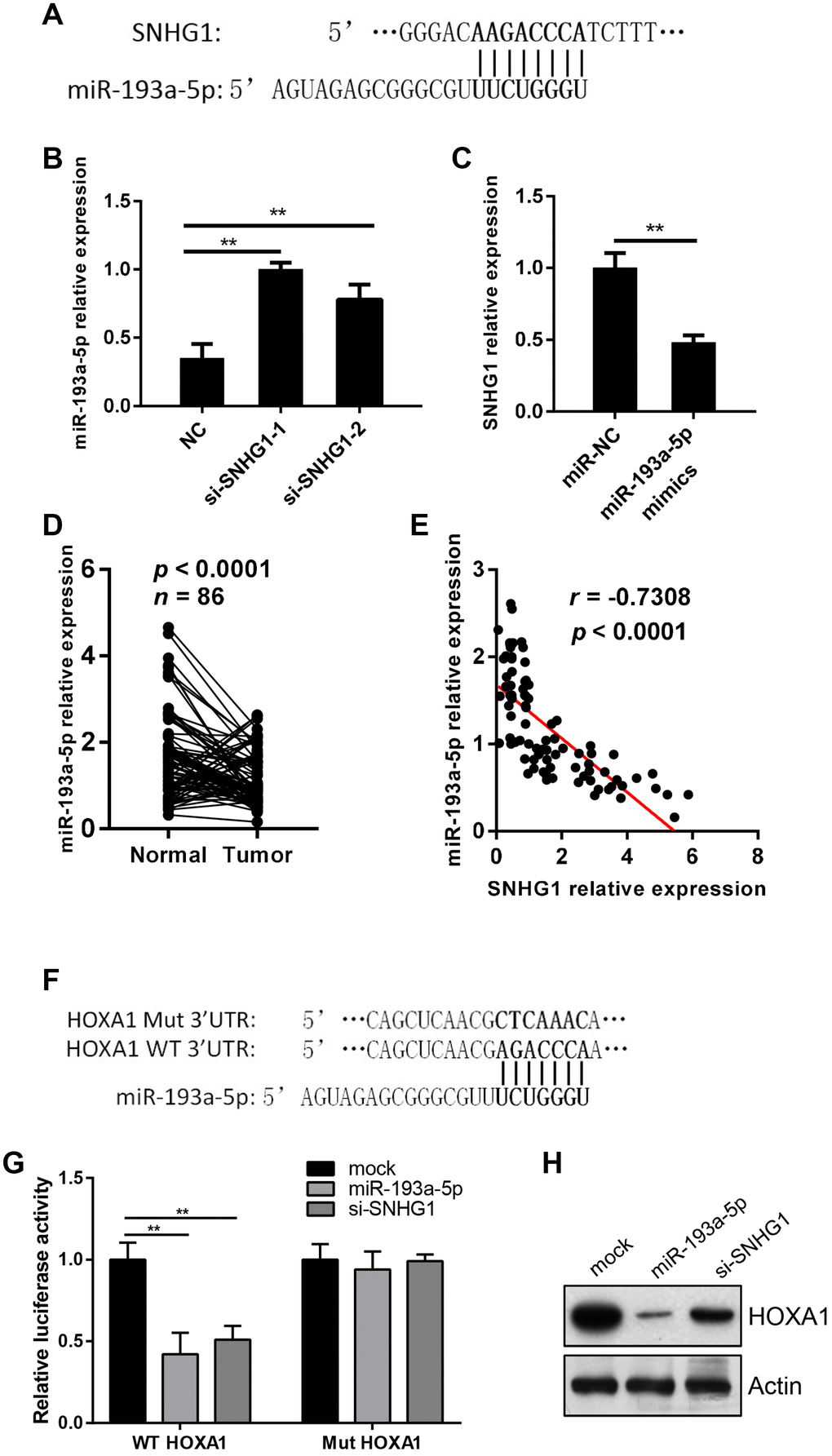 SNHG1 acts as a sponge of miR-193a-5p to activate HOXA1 expression