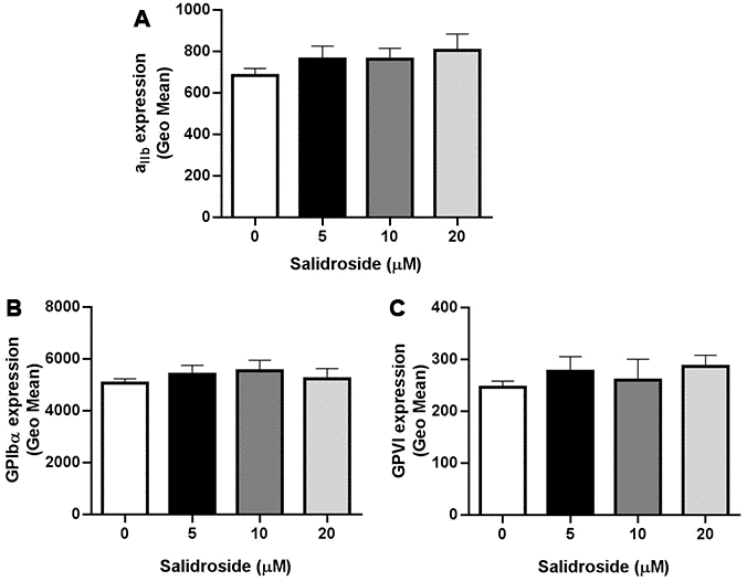 No change of expression of human platelet glycoprotein receptors after salidroside treatment
