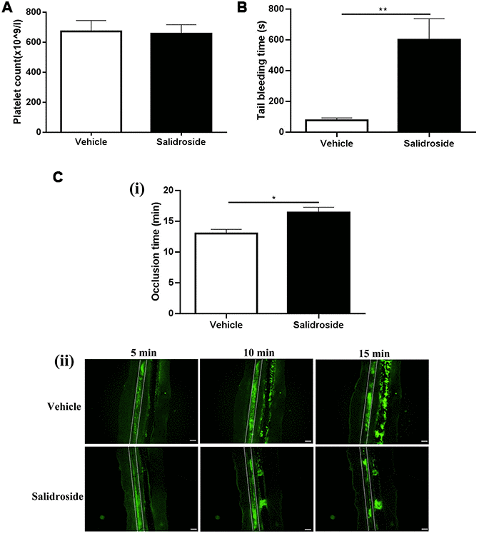 Salidroside (20 mg/kg) was intraperitoneally injected into mice followed by analysis of tail bleeding time after 30 min as described previously [57, 58].