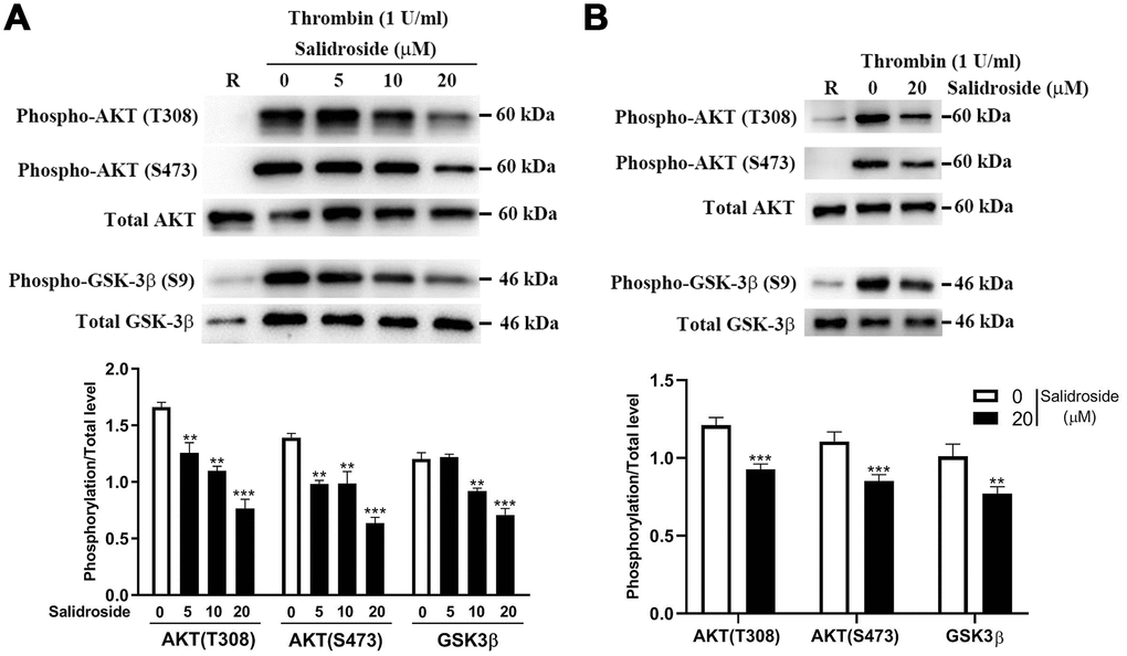 Salidroside reduces phosphorylation of AKT and GSK3β in platelets