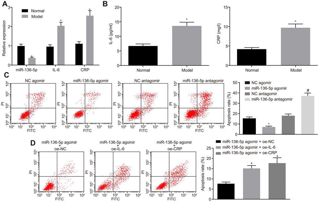 miR-136-5p targets IL-6 and CRP to inhibit the apoptosis of HUVECs in vitro