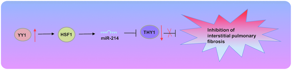 In conclusion, our study has identified a novel modulatory axis, YY1-HSF-1-miR-214-THY-1, and defined the underlying mechanism by which YY1 promotes the pathogenesis of IPF (Figure 6). Our study has furthered the understanding of the pathophysiology of IPF and presents a potential therapeutic target for this disease. However, the translation of those finding into clinics warrants further substantiation in a large-sample clinical trial.