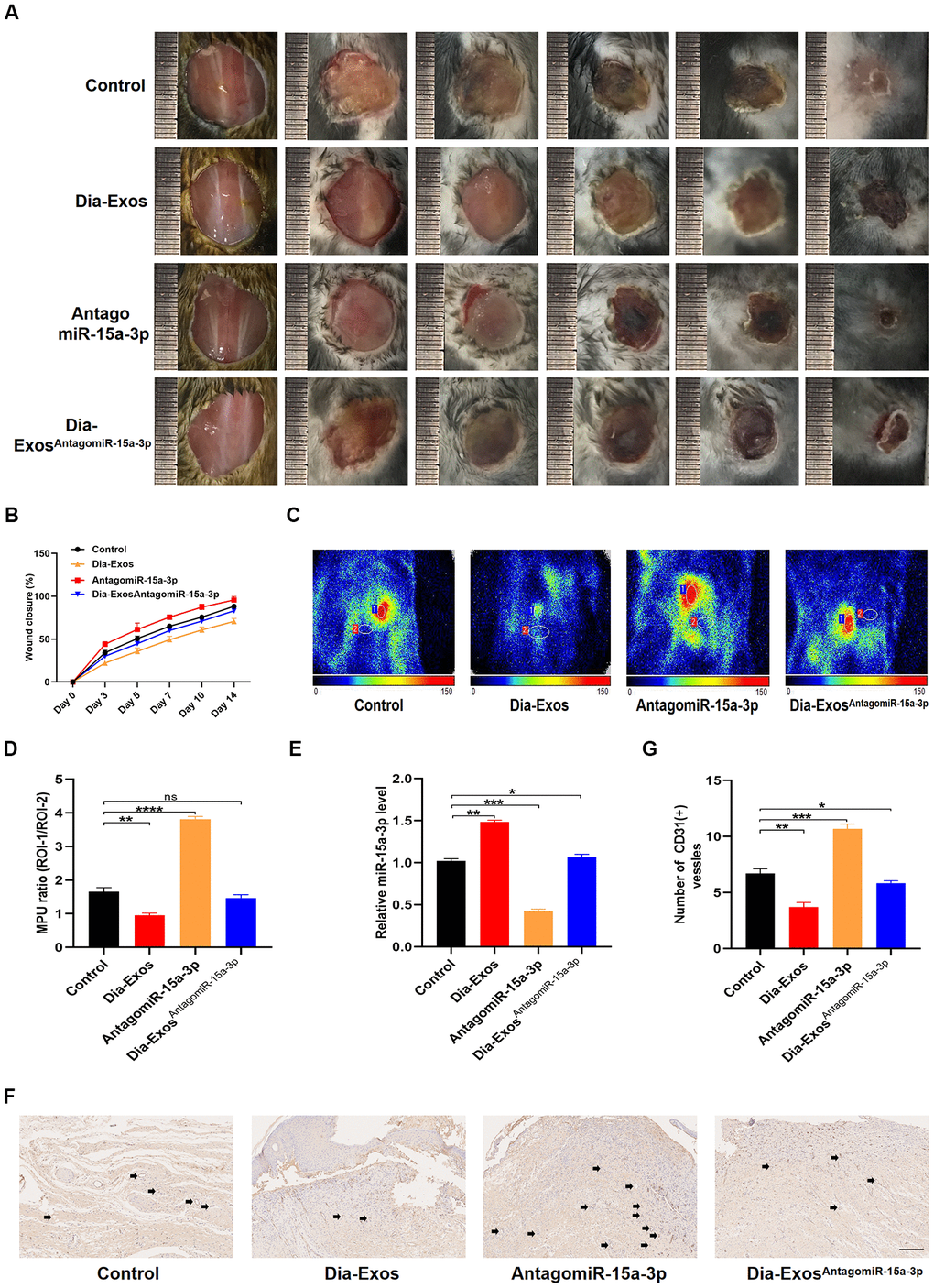 MiR-15a-3p inhibition partly induced the wound healing ability of Dia-Exos in vivo