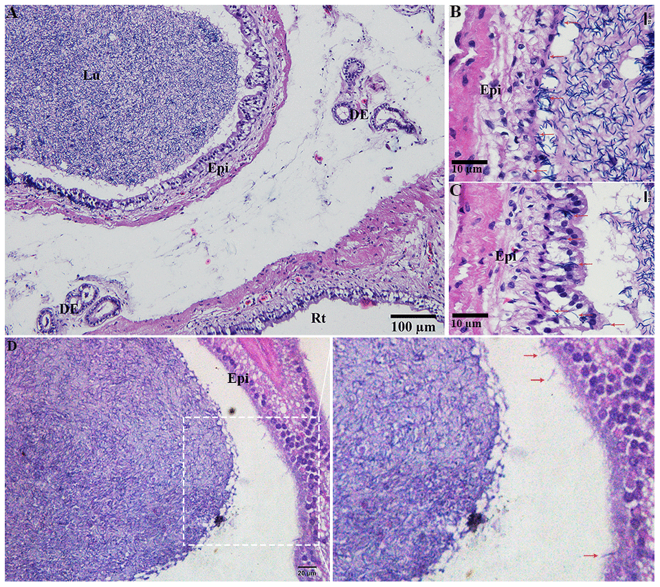 Generally, spermatozoa that develop within testicular seminiferous tubules are morphologically complete when released, but immotile and unable to fertilize an oocyte [1]. After spermiation, the spermatozoa travel via efferentes ductuli into the epididymis for post testicular maturation where they develop the capacity for motility and acquire fertilizing ability [2]. The epididymis epithelial such as principal cell, basal cell, apical cell, narrow cell, and halo cells creates a unique microenvironment for the spermatozoa to gain fertilizing ability [2, 3], and in many species the mature spermatozoa are stored within the cauda epididymis / vas deferens until they are ejaculated. Except in human, there is scant data about spermatozoa that can achieve the ability to fertilize without passing through epididymis segments [4]. The phenomenon of sperm maturation in the epididymis has been well documented in mammals [5–7] and it has been suggested that the epididymis functions as a quality-control organ to prevent the inclusion of misshapen, genetically abnormal or infertile spermatozoa in the ejaculate [4]. In the epididymis of mammals, weak and defective sperms incorporated within the cytoplasm of epithelia, where epithelial cells released ubiquitin that binds with defective spermatozoa for phagocytosis process [8, 9]. In most vertebrates, prior to or during mating, not all spermatozoa are capable of being ejaculated from the reproductive tract due to their weak capability of energetic disorder of mitochondria or DNA damage [10] or immaturity, and these are referred as residual or unejaculated spermatozoa. Such spermatozoa are eliminated by the duct epithelia or luminal macrophages in the male reproductive tract via phagocytosis or absorbing [4]. Phagocytosis of the spermatozoa has been regarded as a deliberate and active process of consumption of entire spermatozoa or their fragments [11]. This activity has been reported to occur in various groups of vertebrates such as reptiles [11, 12], birds [13, 14], amphibians [15], teleosts [16] and mammals [17–21]. While in the turtle epididymis stored spermatozoa appear to deteriorate with the passage of time, while in vitro stored epididymal spermatozoa at 4°C for 40 days showed oxidative damage to mitochondria and results in apoptotic like changes [22, 23]. Therefore, we hypothesize that during sperm storage in the epididymis of soft-shelled turtle (Pelodiscus sinensis), epithelial cells also play their potential role to eliminate spermatozoa via phagocytosis.