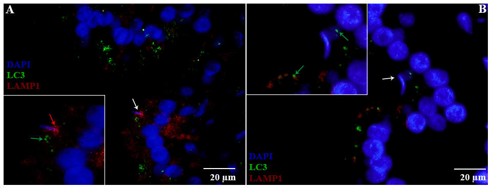 In conclusion, this study provides the first cellular information about in vivo spermiophagy by lysosome and autophagy within the principal cell of the turtle epididymis and presents ultrastructural findings of phagocytosed spermatozoa within the cytoplasm of principal cells, cellular components of lysosome and autophagy. Moreover, we have shown that, lysosome (LAMP1) and autophagy (LC3) specific markers labeling also provide evidence that lysosome and autophagy are both involved in spermiophagy within the principal cells of the turtle epididymis.