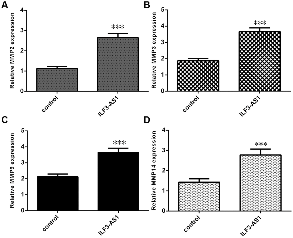 Overexpression of ILF3-AS1 promotes MMP2, MMP3, MMP9, and MMP14 expression