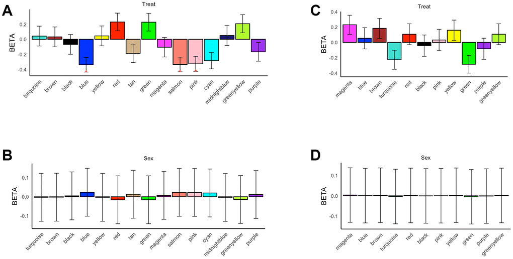 Modules were summarized by their first principal component (ME, module eigengene) and the mergeCloseModules function in the WGCNA R package was used to merged modules whose eigengenes were more than 0.85 correlated [40]. We define module membership of each gene in each module (kME) by correlating its gene expression values with the module eigengene of a given module [44]. Pearson correlation values between MEs and “Factor” (famine offspring vs control offspring) or “Gender” were calculated, and p-values were adjusted with FDR. For each module, the correlation of two parameters [the gene significance (GS) and the module membership (MM)] was evaluated. GS stood for the magnitude of the correlation between the intensities of individual expression genes in the module and “Factor”, and MM meant the magnitude of the correlation between the intensities of individual expression genes in the module and MEs of the module.