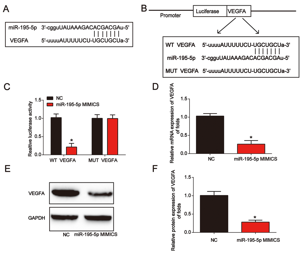 VEGFA was a downstream target of miR-195-5p in vitro
