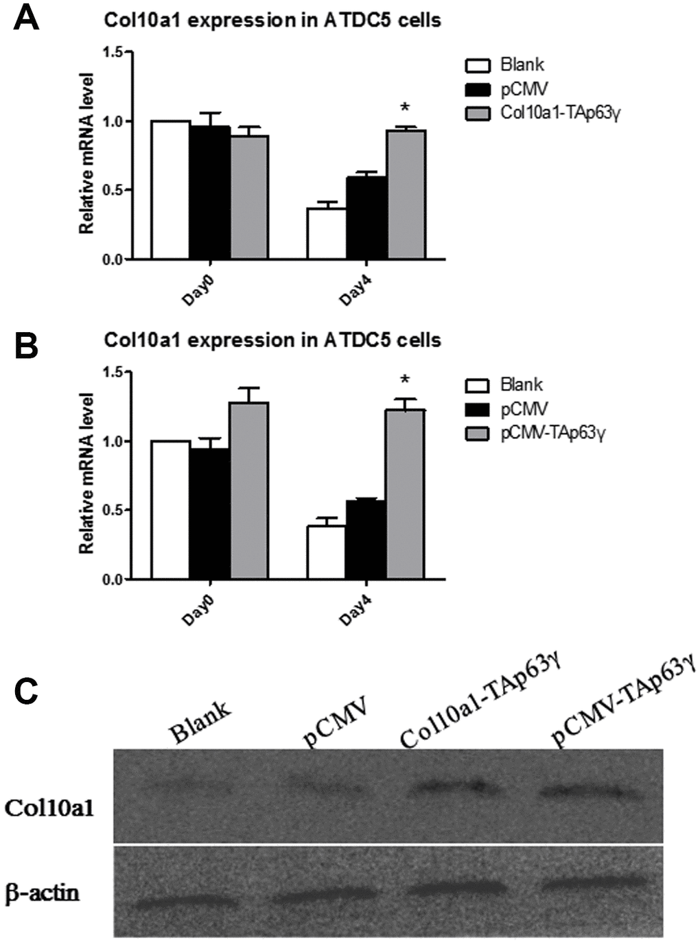 TAp63γ upregulates Col10a1 expression in ATDC5 cells