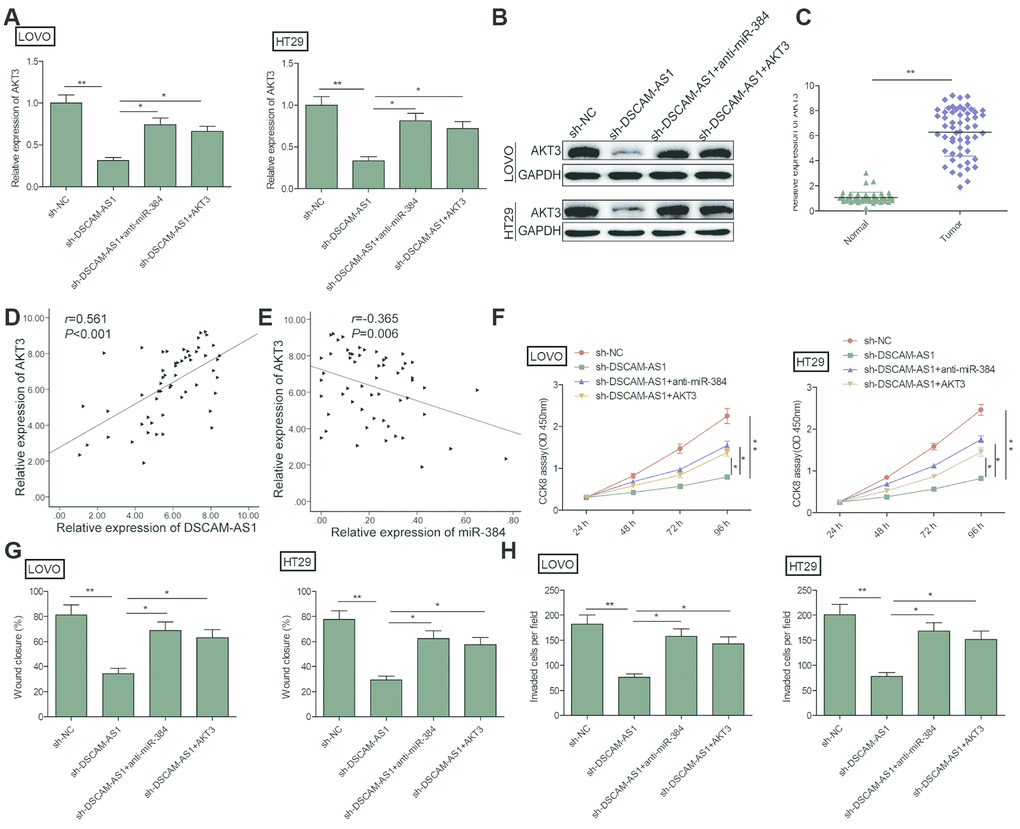 DSCAM-AS1 knockdown inhibited the progression of CRC cells by regulating miR-384/AKT3 axis